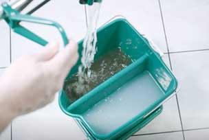 Essorer l’éponge sans effort en actionnant la poignée sur le manche et vos mains restent sèches.