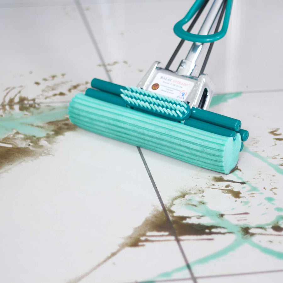 - 1 balai éponge double rouleaux d'essorage ultra absorbant Spirado® avec une éponge pré-montée sur le balai